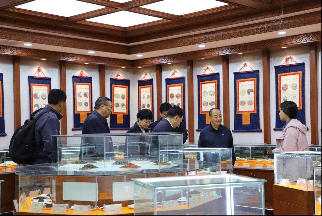在实验标本中心,代表团参观了藏药植物标本室、藏药矿物标本室、水银洗炼流程标本室、外治器械文物展室及藏药图谱认药实训室,各标本室系统收藏高原特色藏药材标本,水银洗炼流程标本完整呈现传统藏药炮制关键技艺环节,外治器械文物展室陈列历代藏医使用的针灸、放血、拔罐等外治器械,藏药图谱认药实训室以“图谱+实物”结合模式助力实操教学,代表团成员与中心工作人员深入交流标本采集、保存及教学应用情况,对学校依托实物资源开展实践教学的模式给予肯定。