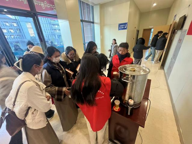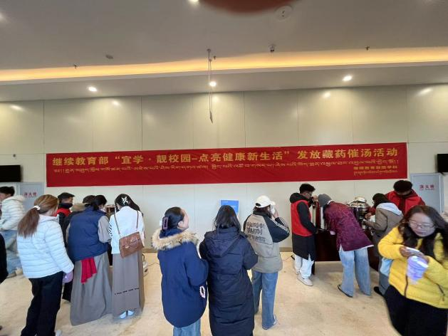 活动当天,学生会成员热情分发温热的“催汤”,在冬日清晨为同学们送去健康关怀。这一暖心举措不仅有助于流感的科学预防,更让同学们在亲身体验中直观感受到藏医药文化的独特魅力,成为一堂生动的传统文化科普课。