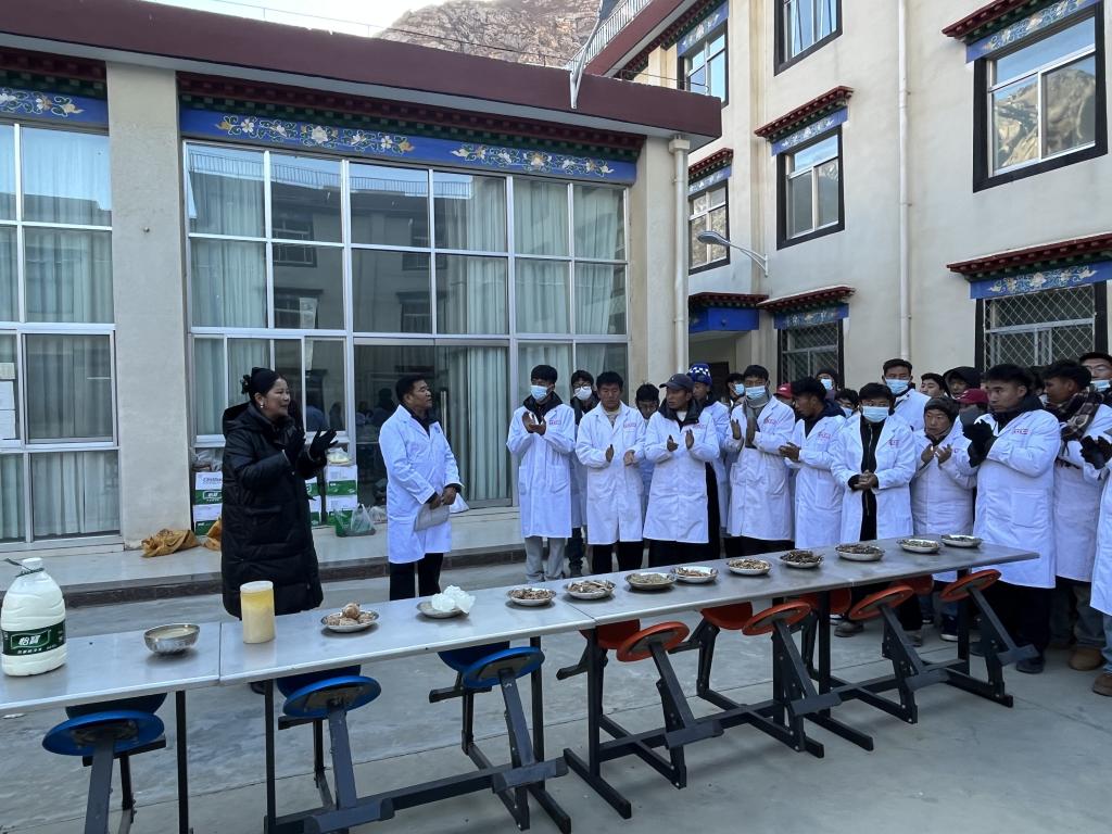 为强化高职学生藏医药实操技能,夯实专业人才培养基础,12月11日至12日,继续教育部教务科特邀学校藏药系格桑顿珠教授,在夺底沟实训基地为24级高职1、2班学生开展藏药炮制与制剂实践实训教学活动。实训开始前,继续教育部主任次仁德吉着重强调了实训期间的纪律要求与安全规范,确保实训顺利开展。