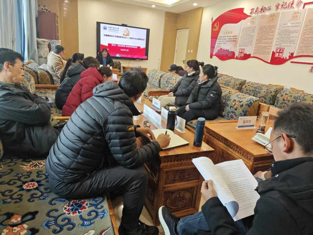 为深入学习宣传贯彻党的二十届四中全会精神,切实筑牢师德师风建设防线,统筹推进学期末各项工作落实,11日下午,我部党总支在利众楼413会议室召开专题会议,尼玛普赤书记主持会议,自治区宣讲团成员郭孟伟教授、翟新然主任,顿珠次仁副主任及部门全体党总支成员、各支部代表、教职工参会。