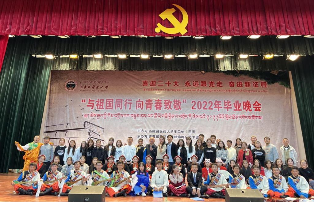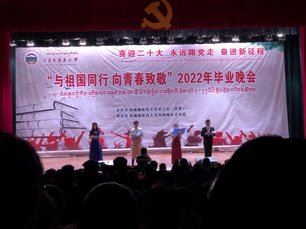 5月23日,西藏藏医药大学“与祖国同行 向青春致敬”2022年毕业晚会在大学术厅举行。校长助理周新虎,学工处处长土登次仁,藏医系党总支书记王积瑞,学工处副处长、团委书记次仁德吉,宣传部副部长郭孟伟,团委副书记西绕江村,团委副书记张艳及全体毕业生、在校生共800余人参加晚会。晚会还特邀了著名藏族歌手次仁拉吉、白玛旦增、罗布桑珠为嘉宾,献上歌曲,致以毕业生青春的礼赞。
